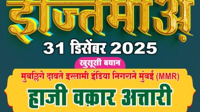 टाईम्स 9 मराठी न्यूज नेटवर्क दावते इस्लामी इंडिया तर्फे ‘सुन्नतों भरा इज्तिमा’ आयोजित करण्यात आला आहे. नवीन वर्षाच्या पूर्वसंध्येला आयोजित…