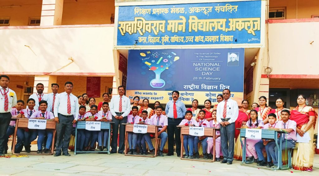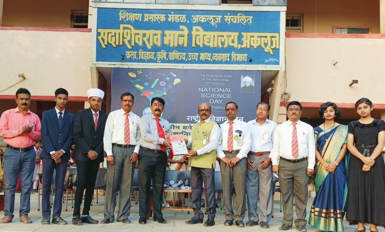 अकलूज येथील सदाशिवराव माने विद्यालय येथे राष्ट्रीय विज्ञान दिन उत्स्फूर्तपणे साजरा करण्यात आला. दरवर्षी ‘२८ फेब्रुवारी’ हा दिवस प्रसिद्ध भारतीय भौतिक शास्रज्ञ डॉ सी व्ही रमण यांच्या ‘प्रकाशाचे विकिरण’ या संशोधन बद्दल ‘राष्ट्रीय विज्ञान दिन’ म्हणून साजरा करण्यात येतो.या राष्ट्रीय विज्ञान दिनानिमित्त विद्यार्थ्यांनी स्व:हस्ताक्षरात लिहिलेल्या विज्ञान विषयक माहिती,लेख,कविता यांचे संकलन करून तयार केलेल्या ‘विज्ञानझेप’ या अंकाचे प्रकाशन, नामवंत शास्त्रज्ञांची माहिती असलेल्या विज्ञान विषयक भित्तिपत्रकाचे अनावरण तसेच विज्ञान विषयक प्रश्नमंजुषा ‘कौन बनेगा वैज्ञानिक’ या कार्यक्रमाचे आयोजन करण्यात आले. प्रमुख पाहुणे म्हणून ‘शिवरत्न नॉलेज सिटी’ चे प्राचार्य प्राणीशास्त्र विषयांचे संशोधक, निसर्ग प्रेमी डॉ. अरविंद कुंभार हे उपस्थित होते.