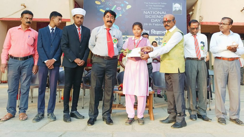तसेच ‘सावंतवाडी’ येथे झालेल्या राज्यस्तरीय विज्ञान प्रदर्शनात ‘ऑटो इरिगेशन सिस्टीम’ या उपकरणाची निवड झालेल्या विद्यार्थ्यांचा सत्कार करण्यात आला. यावेळी विद्यालयातील माध्यमिक, उच्च माध्यमिक, व्यवसाय विभागाकडील सर्व विज्ञान शिक्षकांना याप्रसंगी सन्मानित करण्यात आले. यानंतर विद्यार्थी भाषणात कु. साक्षी वाघमारे हिने तर शिक्षक मनोगतामध्ये ज्योती शिंदे मॅडम यांनी अतिशय अभ्यासपूर्ण विज्ञान विषयक माहिती सांगून आपले मनोगत व्यक्त केले.प्रमुख पाहुणे डॉ. कुंभार सर यांनी विद्यार्थ्यांना मार्गदर्शन करताना वैज्ञानिक क्रांती सोबत मानव जसजसा प्रगती करत चालला आहे तशी निसर्गाची हानी होत चालली आहे याकडे आपण दुर्लक्ष करत चालला असल्याचे सांगितले. ग्लोबल वर्मिंग, प्रदूषण याच्या विळख्यात मानव विनशाकडे चालला असून वेळीच उपाय न केल्यास पृथ्वीच्या ऱ्हासला जगाला सामोरे जावे लागेल यामुळे पर्यावरण रक्षणाची जबाबदारी स्वतःपासून सर्वांनी स्वीकारावी तसेच विज्ञाननिष्ठ बना परंतु निसर्गाचे संतुलन राखा असा मौलिक सल्लाही दिला.