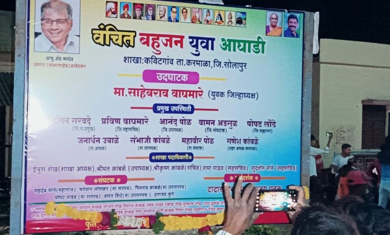 वंचित बहुजन युवा आघाडी कविटगाव ता.करमाळा जि. सोलापूर येथे शाखा उद्घाटन मोठ्या उत्साहात संपन्न