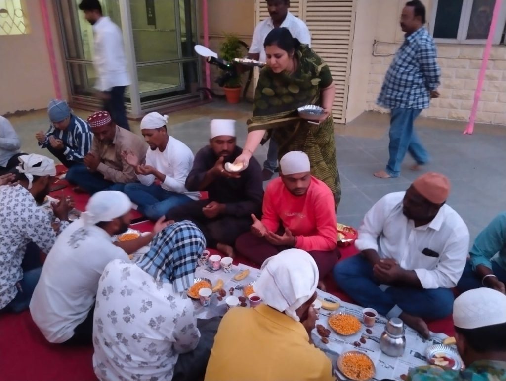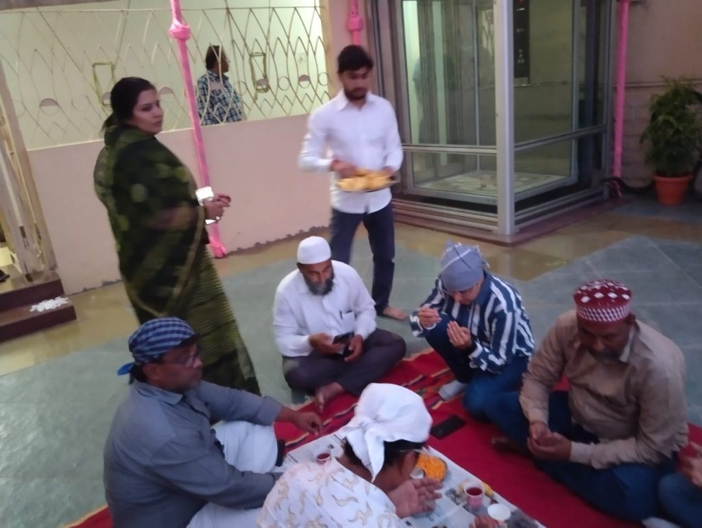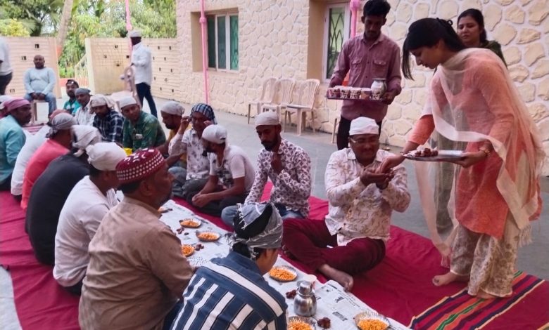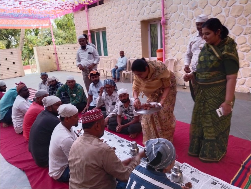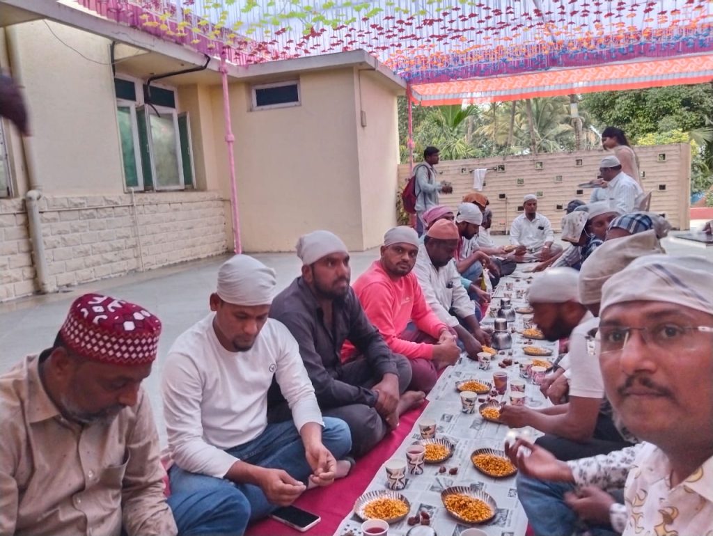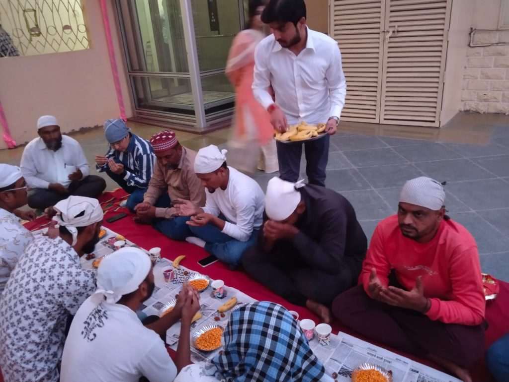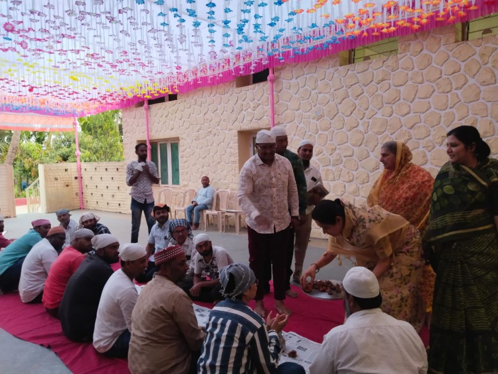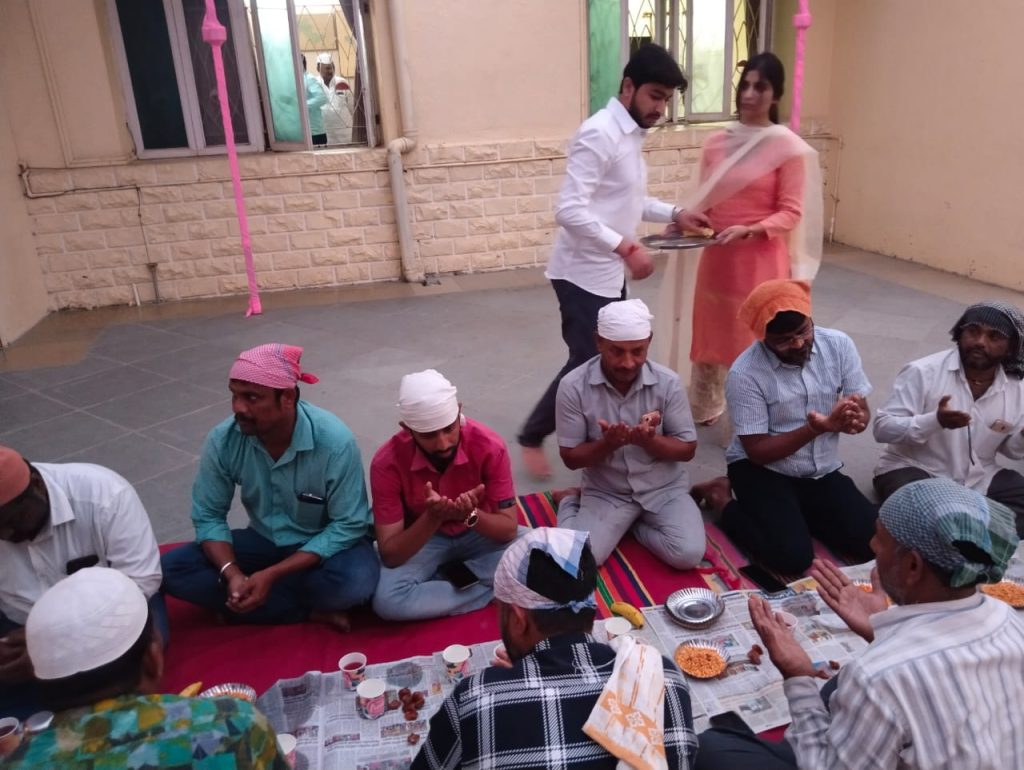 आज अकलूज येथील शिवरत्न बंगला येथे माढा लोकसभा मतदार संघा बाबत अनेक घडामोडी घडत असताना आणि संकटमोचक गिरीश महाजन यांच्या सह बातचीत चालू असताना रमजान महिन्याचा रोजा सोडण्याची वेळ झाली आहे हे लक्षात आले नंतर एक सामाजिक बांधीलकी जोपासत मा सौ नंदिनीदेवी विजयसिंह मोहिते पाटील यांनी मुस्लिम समाजातील कार्यकर्त्या साठी “इफ्तार” ची सोय शिवरत्न बंगल्या मध्ये केली…