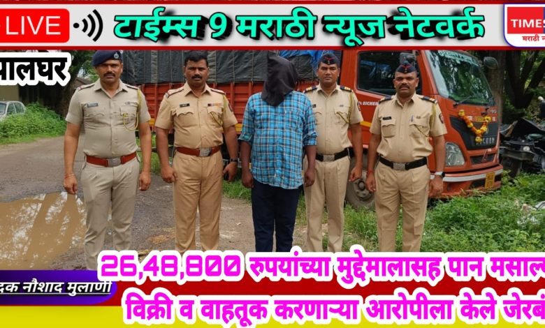 मानवी आरोग्यास हानिकारक असलेला पान मसाला महाराष्ट्र शासनाने अधिसूचना द्वारे वाहतुकीस व विक्रीस प्रतिबंध केला असताना देखील पालघर जिल्ह्यातील कासा पोलीस ठाणे हद्दीतील धुंदलवाडी ते उधवा रोड वरील हळदपाडा गाव हद्दीत या पान मसाल्याची विक्री व वाहतूक करणारा एक आरोपी सह 26 लाख 48 हजार 800 रुपयांचा मुद्देमाल जप्त करण्यात कासा पोलीस ठाण्याचे पोलीस निरीक्षक नामदेव बंडगर यांच्या पथकाला बुधवारी यश आले आहे.