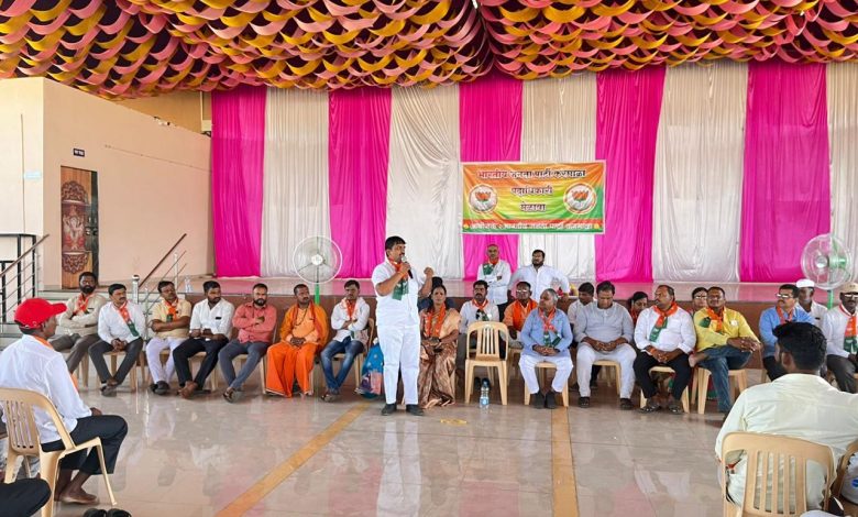 पंतप्रधान नरेंद्र मोदींना पाठिंबा देण्यासाठी माढ्यातून खा. रणजितसिंह नाईक निंबाळकर यांना लोकसभेत पाठवा असे आवाहन भारतीय जनता पार्टीचे प्रदेश उपाध्यक्ष सुनील कर्जतकर यांनी केले आहे.भाजपा नेते गणेश चिवटे यांच्या नेतृत्वात करमाळ्यात बूथ अध्यक्षाचा मेळावा संपन्न झाला यावेळी ते बोलत होते.यावेळी पुढे बोलताना कर्जतकर म्हणाले की,कार्यकर्ता ही भाजपाची ताकत आहे.आज गणेश चिवटे यांच्या नेतृत्वात करमाळ्यातून चांगल लीड मिळेल हा विश्वास आहे.आज देशात लोकसभेच्या निवडणुकीत पंतप्रधान नरेंद्र मोदी विरुद्ध राहुल गांधी अशी लढत आहे.खा.निंबाळकर यांचे मत मोदींना मिळणार आहे.मी संपूर्ण लोकसभा मतदारसंघ फिरलो असून सर्वत्र वातावरण भाजपच्या बाजूने आहे त्यामुळे खा.निंबाळकर हे एक लाखापेक्षा अधिक मतांनी विजयी होतील.यावेळी बोलताना भाजपा नेते गणेश चिवटे म्हणाले की,खा.निंबाळकर यांच्या माध्यमातून करमाळा तालुक्यातील रस्ते व पाण्याचे प्रश्नांची सोडवणूक केली आहे त्यामुळे खा.निंबाळकर यासारख्या कामदार माणसाला मोठ्या मताधिक्याने लोकसभेत पाठवा असे आवाहन त्यांनी यावेळी केले.या मेळाव्यास भाजपा प्रदेश महिला उपाध्यक्षा रश्मी बागल उपस्थित होत्या.यावेळी संतोष वाळुंजकर, संतोष कुलकर्णी, भगवानगिरी गोसावी,अमोल पवार,नितीन झिंजाडे आदींची भाषणे झाली.