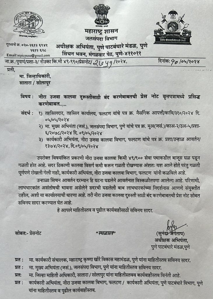 निरा उजवा कालवा दुरुस्तीच्या नावाखाली फडणवीस यांचे माढा लोकसभा मतदार संघात खुनशी राजकारण…