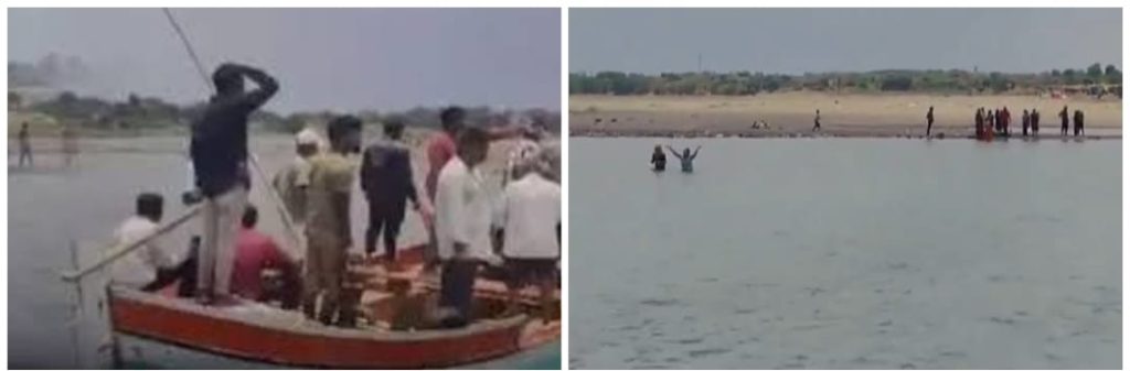 कुगाव जवळ वादळी वाऱ्याने उजनीतील प्रवासी बोट उलटली एक प्रवासी बचावला मात्र पाच ते सहा प्रवासी बेपत्ता अद्यापही रात्रीची शोध कार्य सुरू