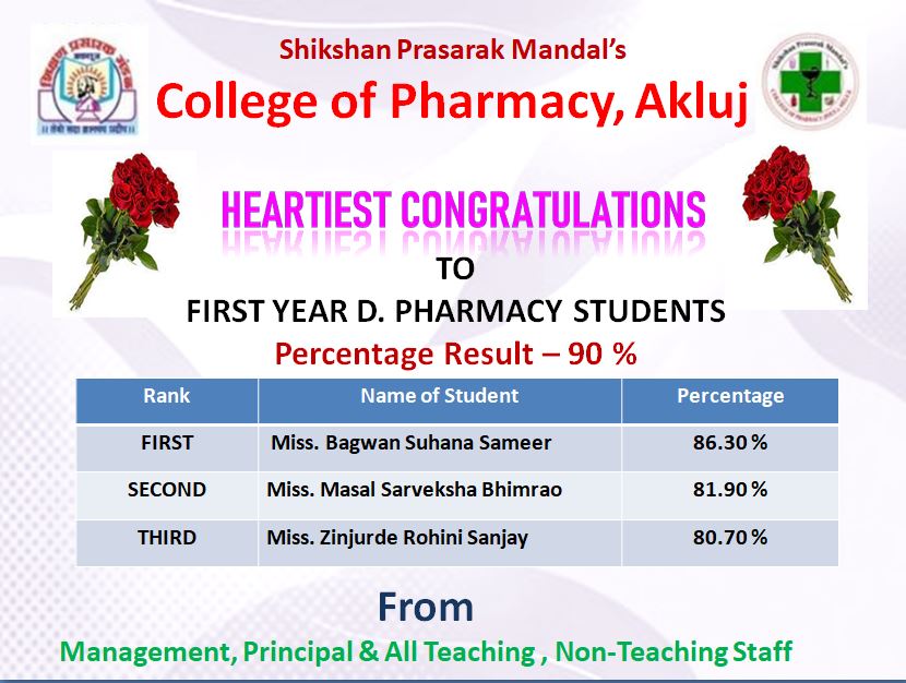 अकलूज येथील बागवान समाजातील उमद व्यक्तिमत्व समीर अमिन बागवान (सर) यांची कन्या असलेल्या सुहाना समीर बागवान याने यंदाच्या वर्षी झालेल्या D फार्मसीच्या पहिल्या वर्षासाठी घेण्यात आलेल्या परिक्षेत 86.30 टक्के गुण मिळवत शिक्षण प्रसारक मंडळाच्या कॉलेज ऑफ फार्मसी मध्ये अव्वल येण्याचा मान मिळवला…