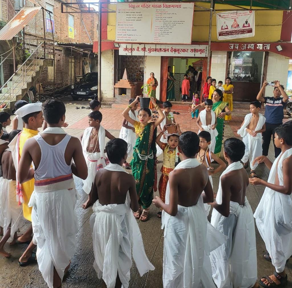 मंदिरात वारकरी झालेल्या विद्यार्थ्यांनी मंदिरात येणाऱ्या भाविकांना तुळशीच्या रोपाचे वाटप केले. यावेळी विक्रमगड तालुक्याच्या तहसीलदार मा.चारुशीला पवार मॅडम यांना देखील वारकरी विद्यार्थीनी तुळशीचे रोप दिले. या दिंडीचे आयोजन मॅड फॉउंडेशन चे सदस्य श्री. रमेश भोईर, तन्वी भोईर, दीपाली भडांगे, एकनाथ राऊत, नवनाथ थोटगे व सर्व कर्मचारी वृंद यांनी केले.