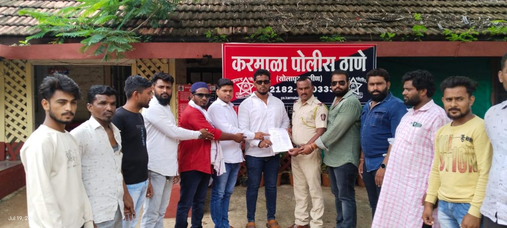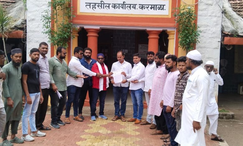 सकल मुस्लीम समाज करमाळा चे मार्गदर्शक व शहर काझी हाजी कलीम काझी सर यांच्या मार्गदर्शनाखाली सकल मुस्लीम समाज चे शहर अध्यक्ष जमीर भाई सय्यद , आझाद भाई शेख (उपाध्यक्ष राष्ट्रवादी काँग्रेस पक्ष शरदचंद्र पवार गट ), अशपाक भाई जमादार ( उपाध्यक्ष राष्ट्रवादी काँग्रेस पक्ष सोलापूर जिल्हा अजित पवार गट ) सोहेल भाई पठाण ( करमाळा शहर अध्यक्ष अजित पवार गट ) यांनी निवेदन मा.नायब तहसीलदार करमाळा व मा. बनकर साहेब पोलीस उपनिरीक्षक करमाळा पोलीस ठाणे यांना दिले आहे.