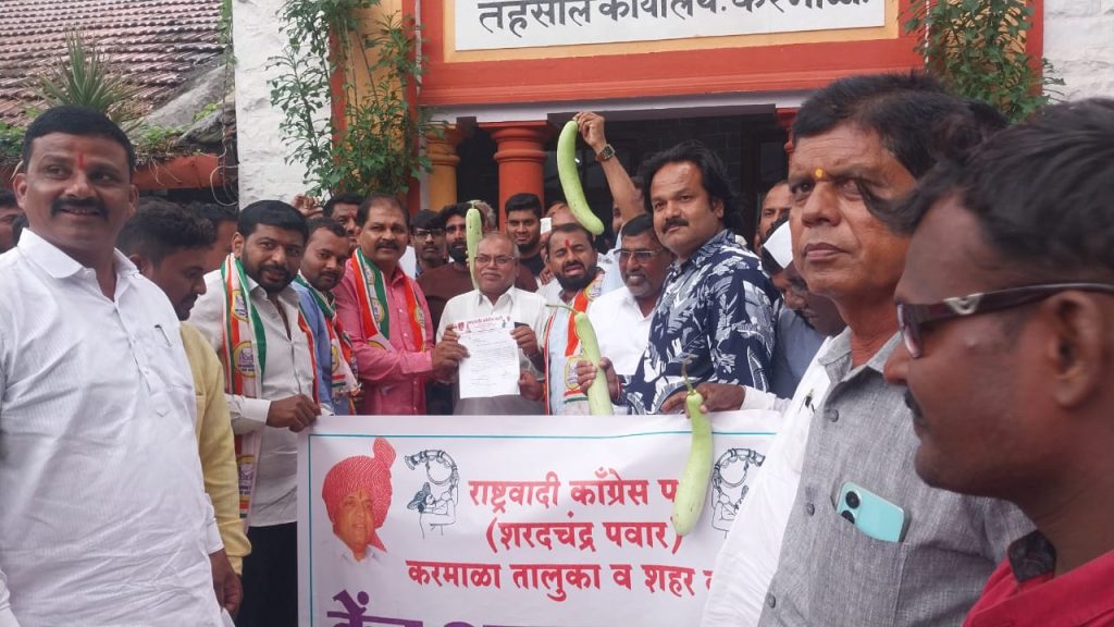 केंद्रीय अर्थ संकल्पात महाराष्ट्राला कमी निधी देऊन एन डी ए सरकारने लोकसभेतील महाराष्ट्रात झालेल्या पराभवाचा राजकीय सूड उगवला असून अशा द्वेष भावनेतून मंजूर झालेल्या अर्थ संकल्पाचा करमाळा विधानसभा मतदार संघातील राष्ट्रवादी काँग्रेस पक्ष (शरदचंद्र पवार गट ) यांच्या वतीने आम्ही जाहीर निषेध करत असल्याचे माजी आमदार नारायण पाटील यांनी सांगितले. करमाळा तालुका राष्ट्रवादी काँग्रेस पक्षाच्या वतीने काल तहसीलदार यांना निवेदन देऊन अर्थ संकल्पात झालेल्या अन्याया बद्दल रोष व्यक्त करण्यात आला. आंदोलनकर्त्यांनी प्रतिकात्मक स्वरूपात भोपळे दाखवून व घोषणा बाजी करत तहसील आवारातील परिसर दणाणून सोडला.