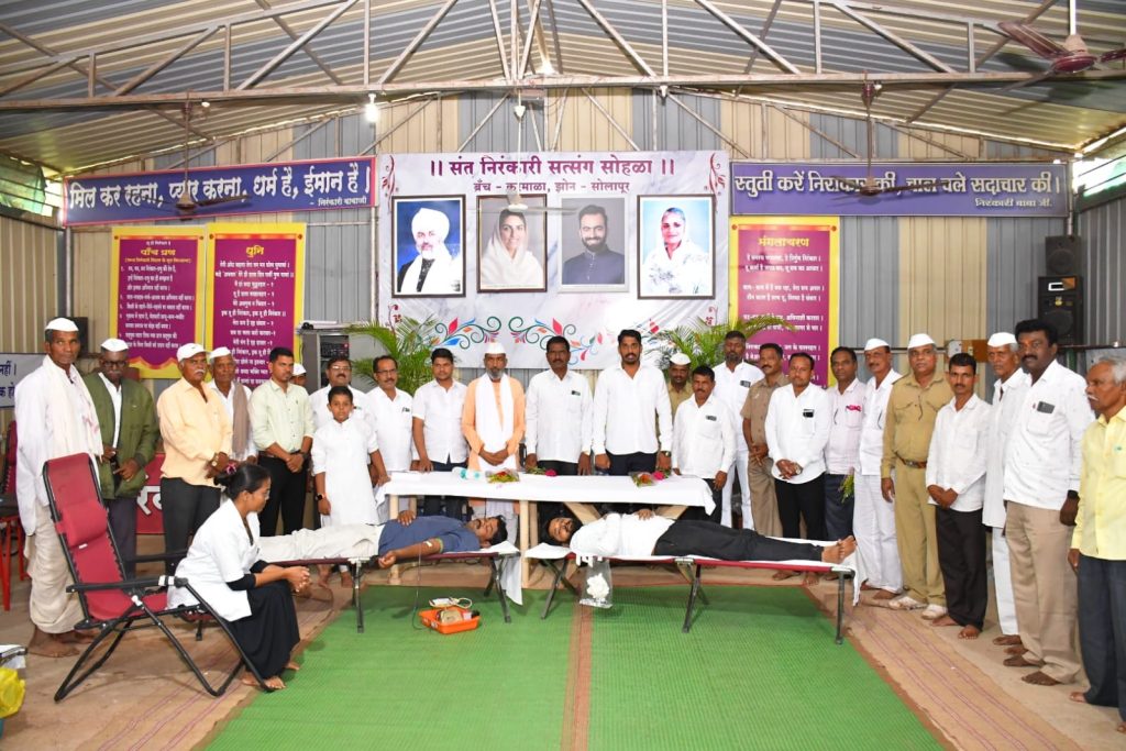 मानव एकता दिनानिमित्त संत निरंकारी चॅरिटेबल फाउंडेशन दिल्ली शाखा करमाळा यांच्या वतीने आयोजित शिबीरात २२५ जणांचे रक्तदान