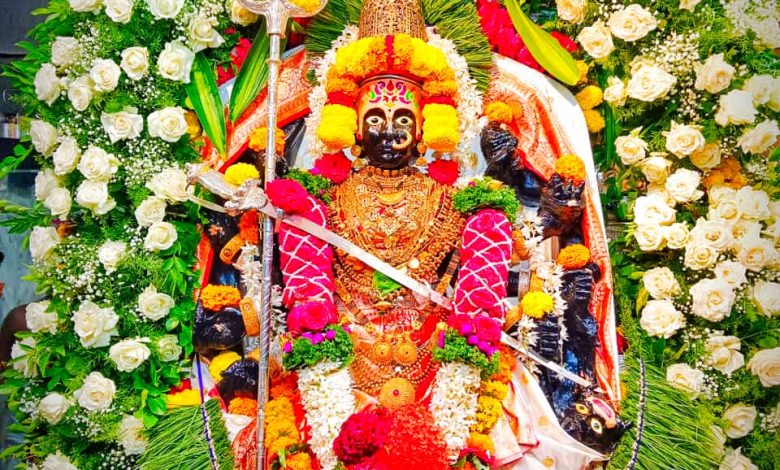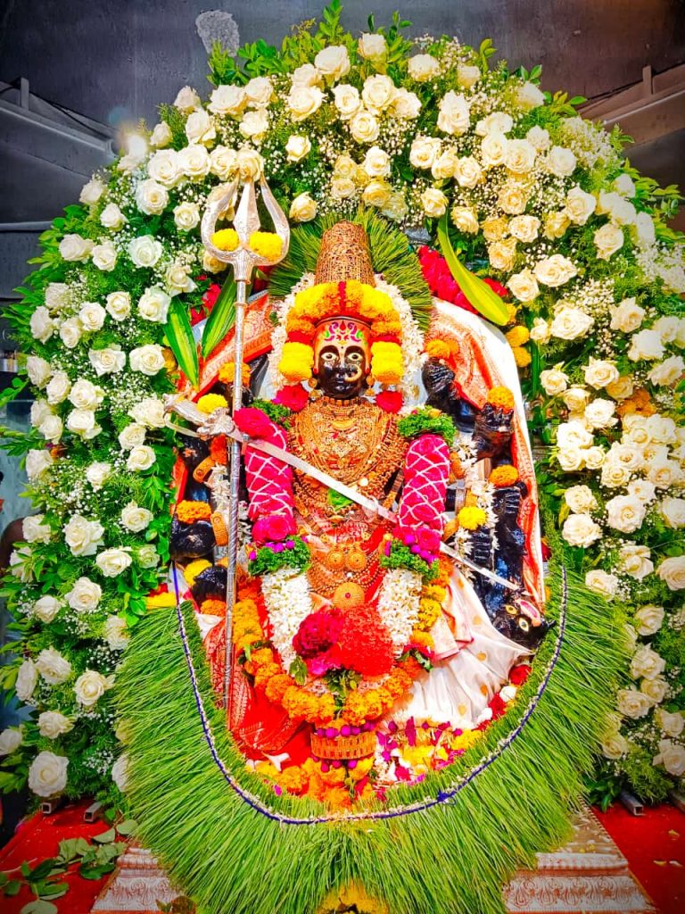 आज पाचवी माळ नवरात्रातली ललिता पंचमी दुर्वाच्या जुड्यांनी सजली करमाळ्याची आई कमलाभवानी!!