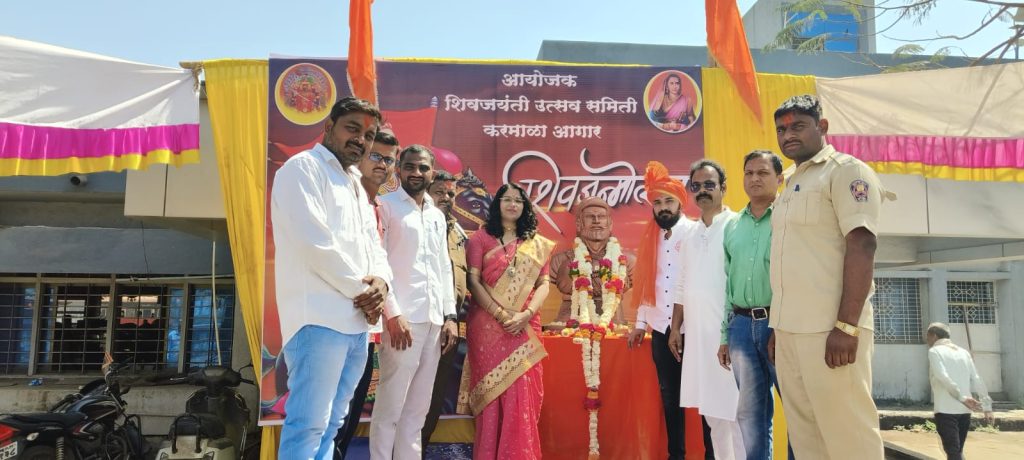 राज्य परिवहन करमाळा आगारात छत्रपती शिवाजी महाराजांची जयंती मोठ्या उत्साहात साजरी करण्यात आली. यासाठी करमाळा आगारातील कर्मचाऱ्यांनी मोठ्या उत्साहाने नियोजन केले होते. यामध्ये करमाळा बसस्थानकावर मोठा मंडप उभारण्यात आलेला होता. याप्रसंगी आगाराच्या आगारप्रमुख अश्विनी किरगत यांच्या छत्रपती शिवाजी महाराजांच्या मूर्तीचे भक्तिभावाने पूजन करण्यात आले. याप्रसंगी संपूर्ण परिसर घोषणांनी दुमदुमत होता. यावेळी मुख्य उत्सवमुर्तीचे पूजन करण्यात आले.