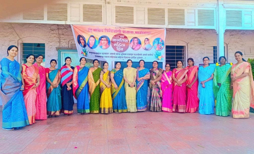 माळीनगर येथील दि मॉडेल विवीधांगी प्रशाला व कनिष्ठ महाविद्यालय माळीनगर येथे जागतिक महिला दिन उत्साहात साजरा करण्यात आला.