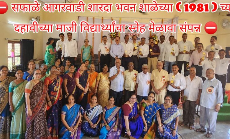 सफाळे आगरवाडी शारदा भवन शाळेच्या (1981)च्या दहावीच्या माजी विद्यार्थ्यांचा स्नेह मेळावा संपन्न