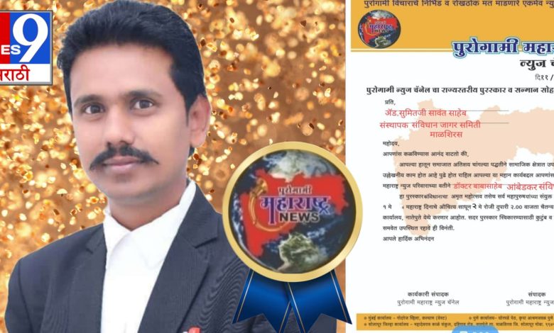 पुरोगामी महाराष्ट्र न्यूज चॅनेल यांचे वतीने दिला जाणारा मानाचा डॉ.बाबासाहेब आंबेडकर संविधान रक्षक या राज्यस्तरीय पुरस्कारासाठी ॲड.सुमित सावंत यांची निवड करण्यात आली असून शुक्रवार दिनांक 02 मे 2025 रोजी नातेपुते येथे होणाऱ्या पुरोगामी महाराष्ट्र न्यूज चॅनेल च्या राज्यस्तरीय पुरस्कार व सन्मान सोहळा या कार्यक्रमाध्ये मान्यवरांचे शुभहस्ते पुरस्कार देऊन गौरविण्यात येणार असल्याचे पुरोगामी महाराष्ट्र न्यूज चॅनेल चे वतीने जाहीर करण्यात आले…