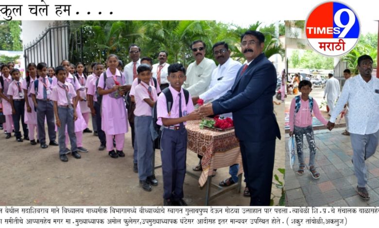 अकलूज येथील शिक्षण प्रसारक मंडळाच्या सदाशिवराव माने विद्यालयात नवीन शैक्षणिक वर्षात इयत्ता पाचवी वर्गात प्रवेश घेतलेल्या विद्यार्थ्यांचे गुलाब पुष्प व पेढे देऊन स्वागत करण्यात आले.