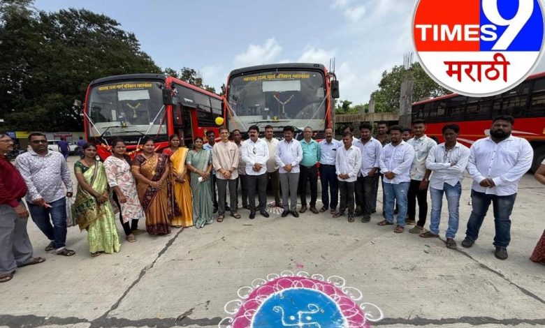 सफाळे आगारात दाखल झालेल्या नवीन लालपरी बसेसचे आमदार विलास तरे यांच्या हस्ते उद्घाटन