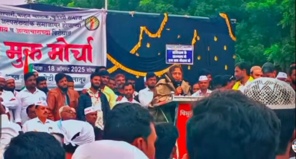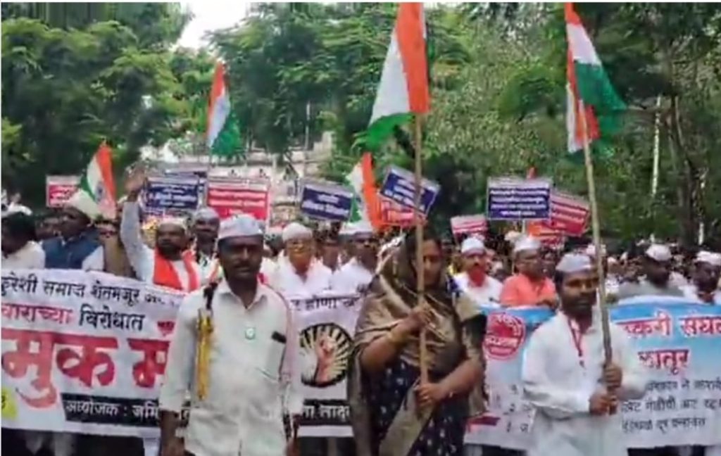 मॉब लीचिंगद्वारे हत्या झालेल्या नागरिकांच्या कुटुंबियांना मोबदला द्यावा आदी मागण्यासाठी हा मोर्चा काढण्यात आला.मोर्चात सहभागी झालेल्या प्रत्येकाच्या हातात महापुरुषांच्या जयघोषासह आपल्याला न्याय मिळावा अशा आशयाचे फलक होते.गोमातेचे रक्षण झालेच पाहिजे असा फलक नागरिकांचे लक्ष वेधून घेणारा ठरत होता.मोर्चामध्ये संविधान सेवा संघाच्या संस्थापक अध्यक्षा ॲड शहेजादी शेख आपल्या हातात तिरंगा ध्वज घेऊन सहभागी झाल्या होत्या.अनेक मोर्चेकरांच्या हाती तिरंगा ध्वजासह आपल्या मागण्यांचे फलक दिसत होते. मोर्चा तहसील कार्यालयावर पोहचल्यानंतर ऑल इंडिया जमिअतुल कुरेश महाराष्ट्र राज्यचे उपाध्यक्ष अफजल कुरेशी यांनी सविस्तर असे प्रास्ताविक केले…