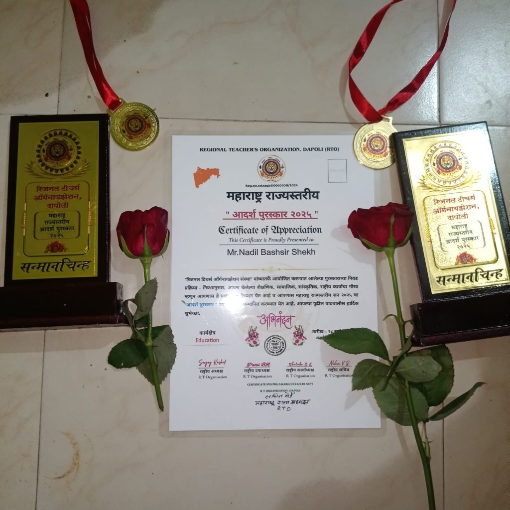 🎯 महाराष्ट्र राज्यस्तरीय आदर्श शिक्षक पुरस्कार 2025 सोहळ्यात नादिल शेख यांचा विशेष गौरव
