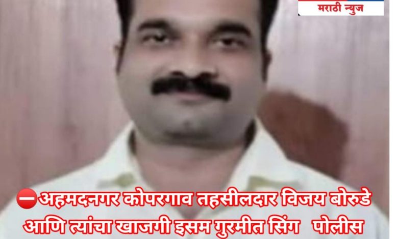 अहमदनगर कोपरगाव तहसीलदार विजय बोरुडे व त्यांचा खाजगी इसम गुरमीत सिंग नाशिक पोलीस उपअधीक्षक वैशाली पाटील यांच्या जाळ्यात अटक