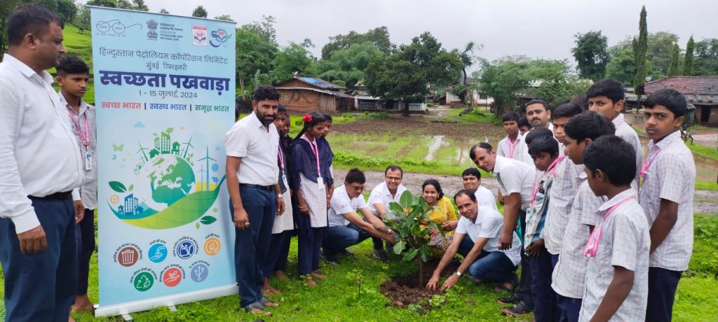 पालघर जिल्ह्यातील जव्हार तालुक्यातील राजमाता जिजाऊ विकास प्रबोधन संस्था, जव्हार संचालित  “छत्रपती शाहू विद्यानिकेतन”, आयरे, ता. जव्हार येथे शनिवार दि. २०/०७/२०२४ रोजी हिंदुस्थान पेट्रोलियम रिफायनरी, मुंबई  (HPCL) यांच्यावतीने छत्रपती शाहू विद्यानिकेतन,आयरे शाळेत ऑल एचपीसीएल ओबीसी कर्मचारी संघटना- मुंबई रिफायनरी युनिट आयोजित स्वच्छता पखवाडा २०२४ च्या निमित्ताने सुवर्ण जयंती -मिशन वृक्षारोपणांचं कार्यक्रम करण्यात आला. या संस्थेचे पदाधिकारी यांचे आगमन होतच विद्यार्थ्यानी सर्व पाहुण्यांचे टाळ्यांच्या गजरात व पुष्पवृष्टी करून स्वागत केले.