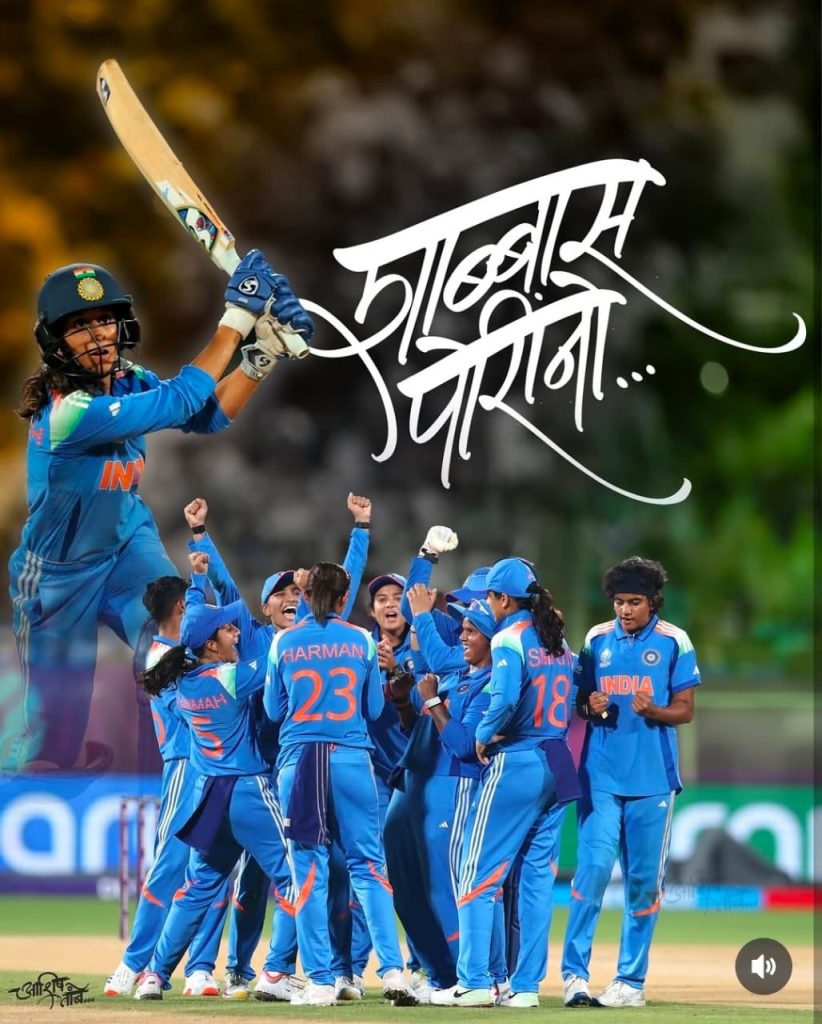 भारतीय महिला क्रिकेट संघाने विश्वकप जिंकल्याने एवढ्या मध्यरात्री सुद्धा सोशल मीडिया वर प्रत्येक भारतीयांच्या तोंडून “शाब्बास पोरींनो” हे गौरवोद्गार बाहेर पडलेले पहायला आणि ऐकायला मिळाले,हे विशेष…