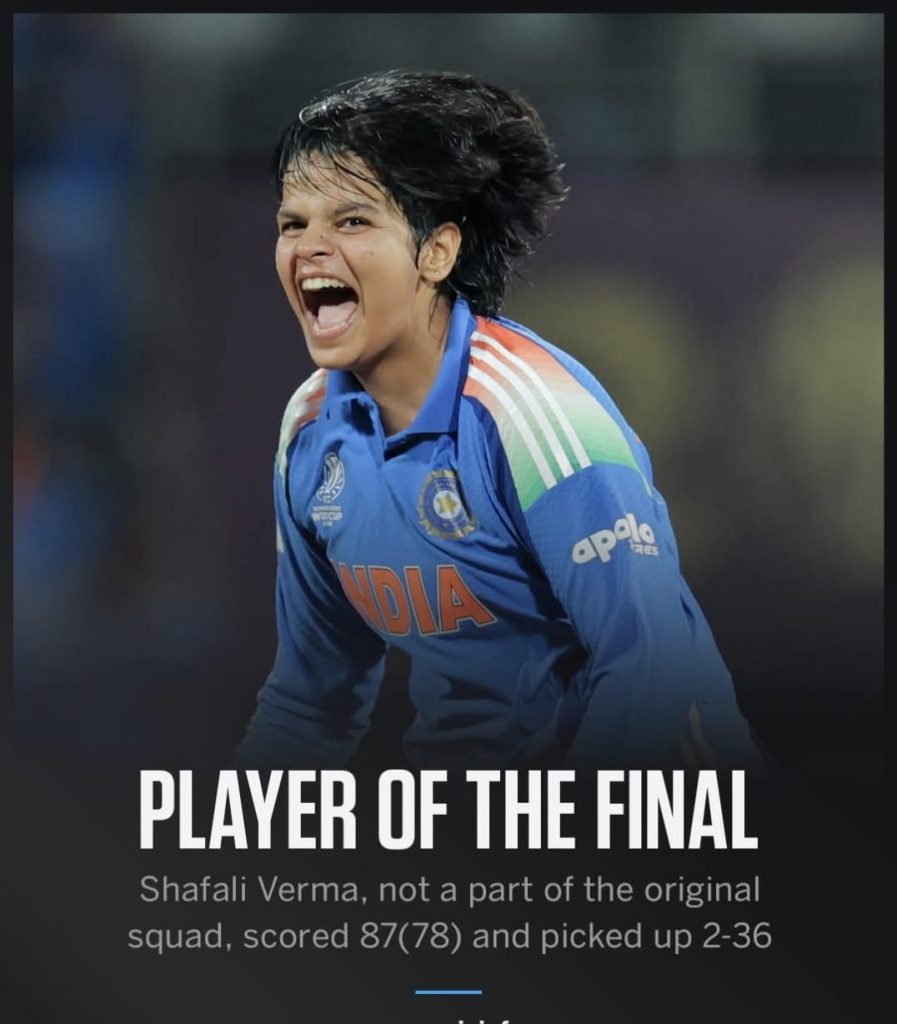 भारताच्या विजयात अष्टपैलू खेळाडू दीप्ती शर्मा हिने महत्त्वपूर्ण भूमिका बजावली.तिने अर्धशतकी खेळीनंतर अप्रतिम गोलंदाजी करत पाच बळी घेतले आणि संघाला विजय मिळवून दिला.सलामीवीर शेफाली वर्मा हिनेही शानदार फलंदाजीसह गोलंदाजीत मोलाची कामगिरी केली.तिच्या अष्टपैलू कामगिरीसाठी तिला सामनावीर (Player of the Match) म्हणून गौरवण्यात आले…