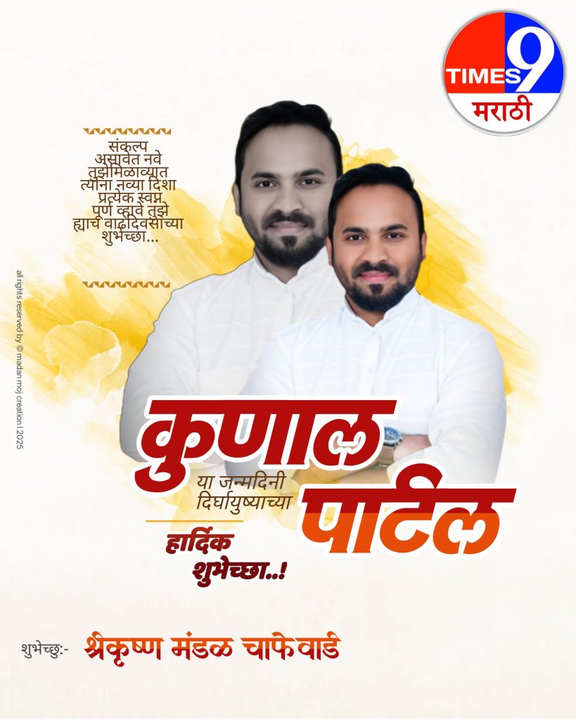 हिंदूश्री कुणाल (दादा) पाटील यांना टाईम्स 9 मराठी न्यूज नेटवर्क समुहाच्या वतीने वाढदिवसाच्या खुप खुप शुभेच्छा