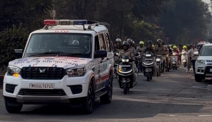 अकलूज उप-प्रादेशिक परिवहन कार्यालय व अकलूज पोलीस स्टेशन यांच्या संयुक्त विद्यमाने रस्ता सुरक्षा अभियान-२०२६ अंतर्गत हेल्मेट, सीटबेल्ट,सुरक्षित विद्यार्थी वाहतूक रस्ता सुरक्षा रॅली संपन्न झाली. पोलीस उप-अधीक्षक संतोष वाळके,उप प्रादेशिक परिवहन अधिकारी अमरसिंह गवारे, सहायक प्रादेशिक परिवहन अधिकारी अश्विनकुमार पोंदकुले यांच्या हस्ते रस्ता सुरक्षा रॅलीस हिरवा झेंडा दाखवून सुरुवात करण्यात आली.