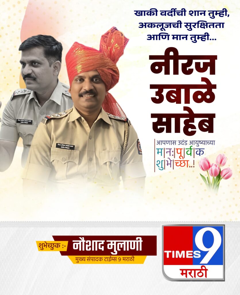 नीरज उबाळे (साहेब) यांना टाईम्स 9 मराठी न्यूज समुहाच्या वतीने वाढदिवसाच्या निमित्ताने उदंड आयुष्याच्या अनंत शुभेच्छा!