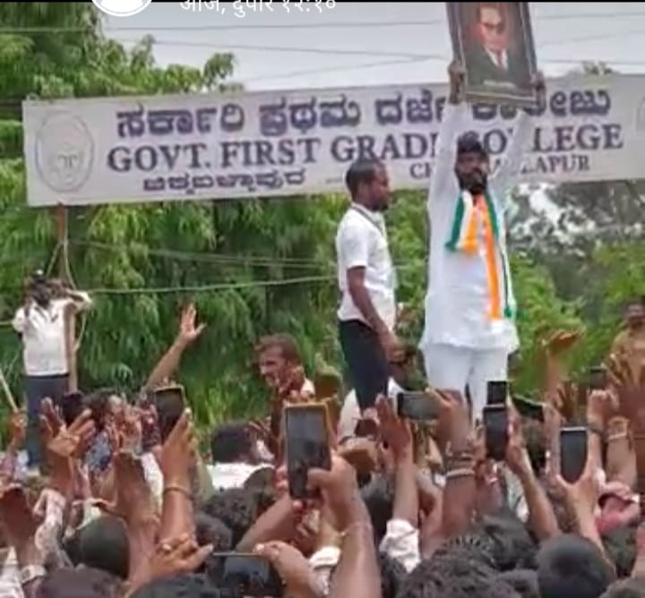 भाजपचे वरिष्ठ नेते आणि माजी मुख्यमंत्री बोम्मई यांच्या खास लिस्टमधील मंत्री म्हणून के. सुधाकर यांचं नाव घेतलं जात. मात्र, कोचिंग क्लासेचचा संचालक असलेल्या प्रदीप ईश्वरने त्यांना चिक्काबल्लापूर मतदारसंघातून १०, ६४२ मतांनी पराभूत केले. विशेष म्हणजे विजयी जल्लोष साजरा करताना हातात डॉ. बाबासाहेब आंबेडकर यांचा फोटो घेऊन आनंद व्यक्त केला. तसेच, लोकशाही जिवंत असून बाबासाहेबांमुळेच आज एक अनाथ मुलगा आमदार झाल्याचं ईश्वर यांनी म्हटले.