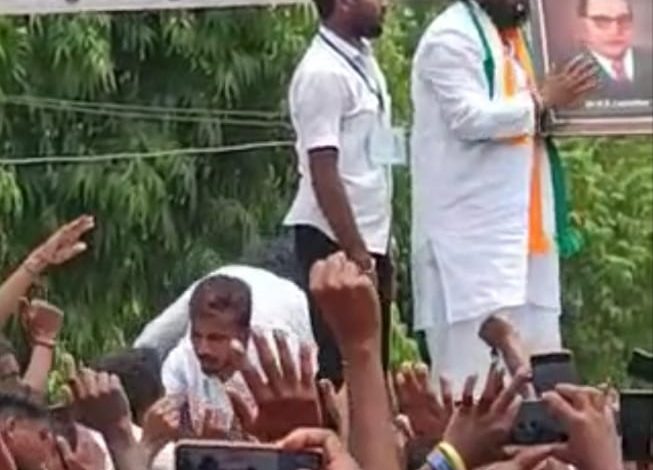 कर्नाटकात अनाथ पोरगा आमदार झाला, डॉ. बाबासाहेबांचा फोटो घेऊन जल्लोष केला