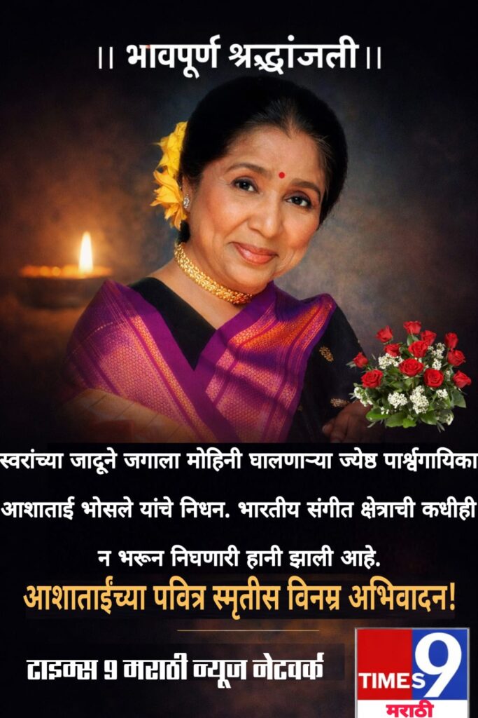 टाईम्स ९ मराठी न्यूज नेटवर्कतर्फे आशाताई भोसले यांना भावपूर्ण श्रद्धांजली!