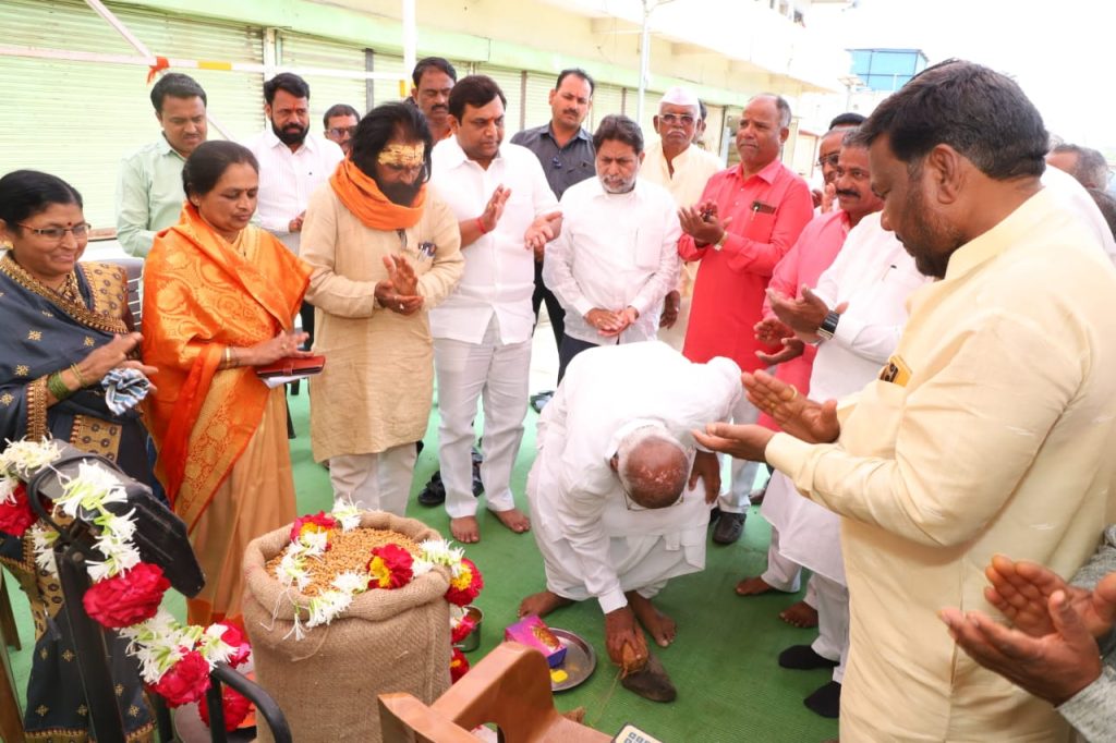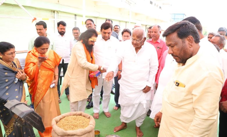 माजी मंत्री मधुकरराव चव्हाण यांच्या हस्ते तुळजापूर तालुका शेतकरी सहकारी खरेदी विक्री संघाच्या हरभरा हमीभाव खरेदीचे उद्घाटन