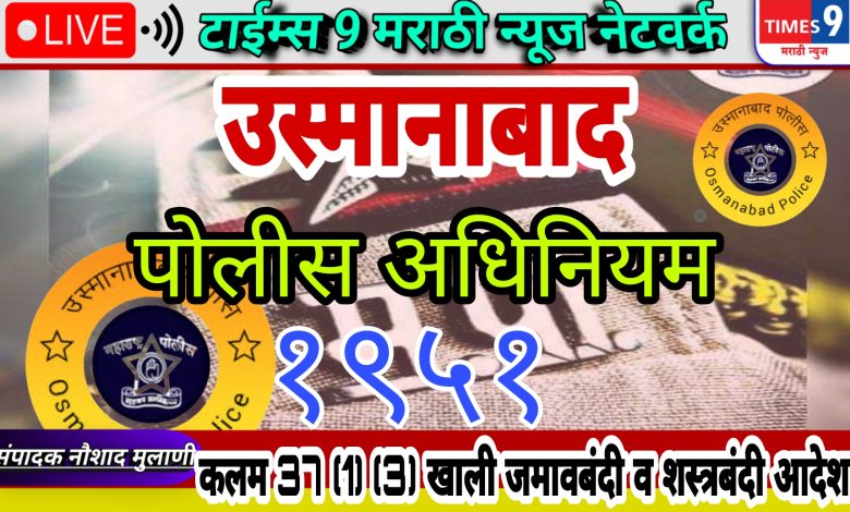 आणि ज्याअर्थी, मा.पोलिस अधिक्षक उस्मानाबाद यांचे अहवालावरुन जिल्हयाची कायदा व सुव्यवस्था अबाधीत राखण्यासाठी महाराष्ट्र पोलीस अधिनियम 1951 चे कलम 37 (1) (3) प्रमाणे जिल्हयात प्रतिबंधात्मक आदेश लागु करण्याची खात्री झालेली आहे.
