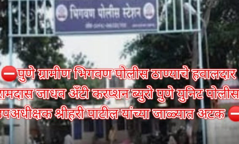 पुणे ग्रामीण भिगवण पोलीस ठाण्याचे हवालदार रामदास जाधव अँटी करप्शन ब्युरो पुणे युनिट पोलीस उपअधीक्षक श्रीहरी पाटील यांच्या जाळ्यात अटक