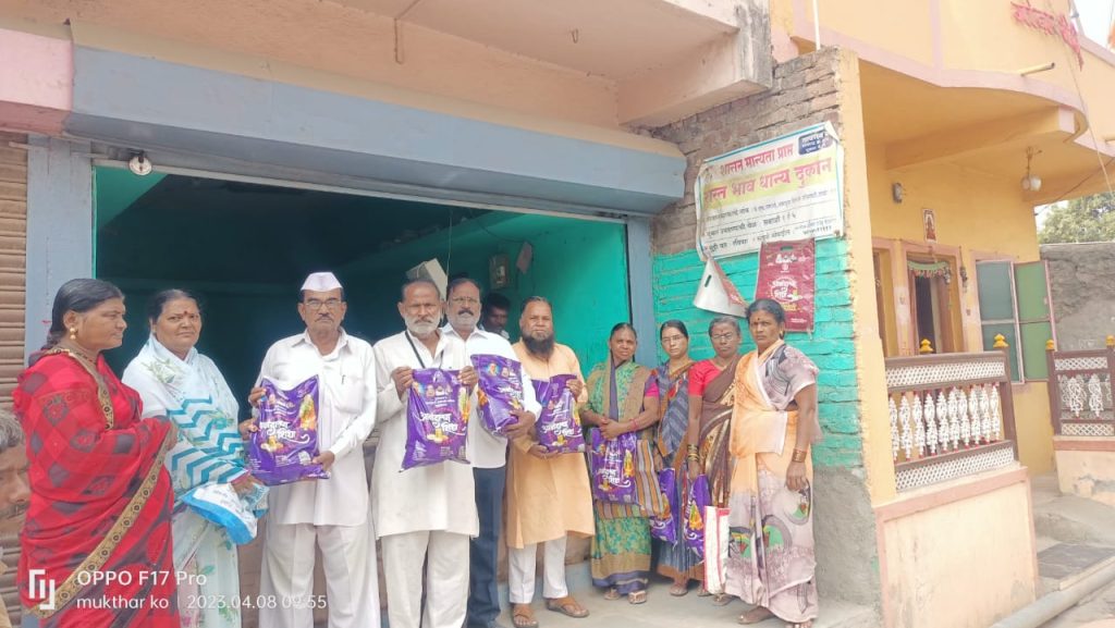 शासनाच्या सरकारमान्य स्वस्त धान्य दुकानातून “आनंदाचा शिधा” या योजनेचा मुख्तारभाई कोरबु यांच्या हस्ते शुभारंभ
