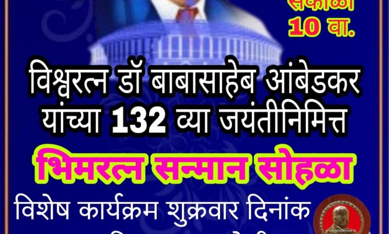 डॉ. बाबासाहेब आंबेडकर जयंती निमित्त “भीमरत्न सन्मान पुरस्कार “सोहळ्याचे आयोजन