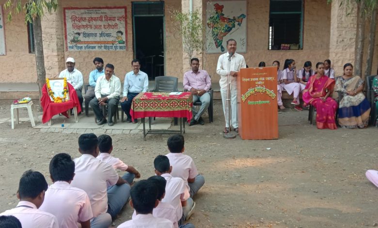 याप्रसंगी प्रशालेचे मुख्याध्यापक बी.टी. शिंदे सर प्राथमिक विभागाचे मुख्याध्यापक फिरोज तांबोळी सर व प्रशालेतील सर्व शिक्षक, शिक्षिका व शिक्षकेतर कर्मचारी उपस्थित होते कार्यक्रमाचे सूत्रसंचालन इयत्ता दहावीतील ज्ञानेश्वरी कदम व कल्याणी शिंदे या विद्यार्थिनींनी केले प्रास्ताविक सायली पवार व अनुमोदन साक्षी ढगे या विद्यार्थिनींनी केले आभार ग्यानी भारती या विद्यार्थिनी मानले.