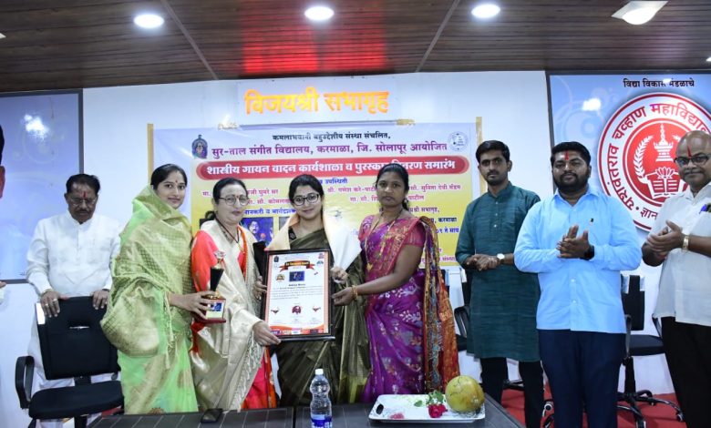 सुरताल संगीत विद्यालयाच्या वतीने करमाळा येथे शास्त्रीय संगीत कार्यशाळा संपन्न. माननीय विलासरावजी घुमरे तसेच गणेश करे पाटील यांची प्रमुख उपस्थिती