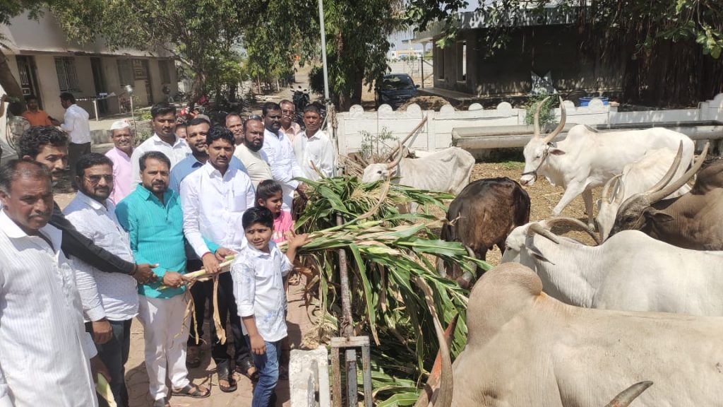 तर गुरु गणेश दिव्य रत्न गोपालन या संस्थेतील / गो शाळेतील गाईंना ( जनावरांना ) हिरवा चारा चेअरमन मनोज गोडसे, नगरसेवक मनोज राखुंडे, पत्रकार संजय शिंदे, अध्यक्ष नाना मोरे, संभाजी होनप, ॲड. प्रशांत बागल यांच्या शुभहस्ते वाटण्यात आला असुन यावेळी ॲड. राहुल सावंत, नगरसेवक पप्पू सावंत, मा.नगरसेवक फारूक जमादार, मा.नगरसेवक विजय सुपेकर, संचालक वालचंद रोडगे, मा. संचालक विठ्ठल रासकर, जालिंदर जाधव, निशांत खारगे , सागर परदेशी, मजहर पठाण, बापू नलवडे उपस्थित होते.