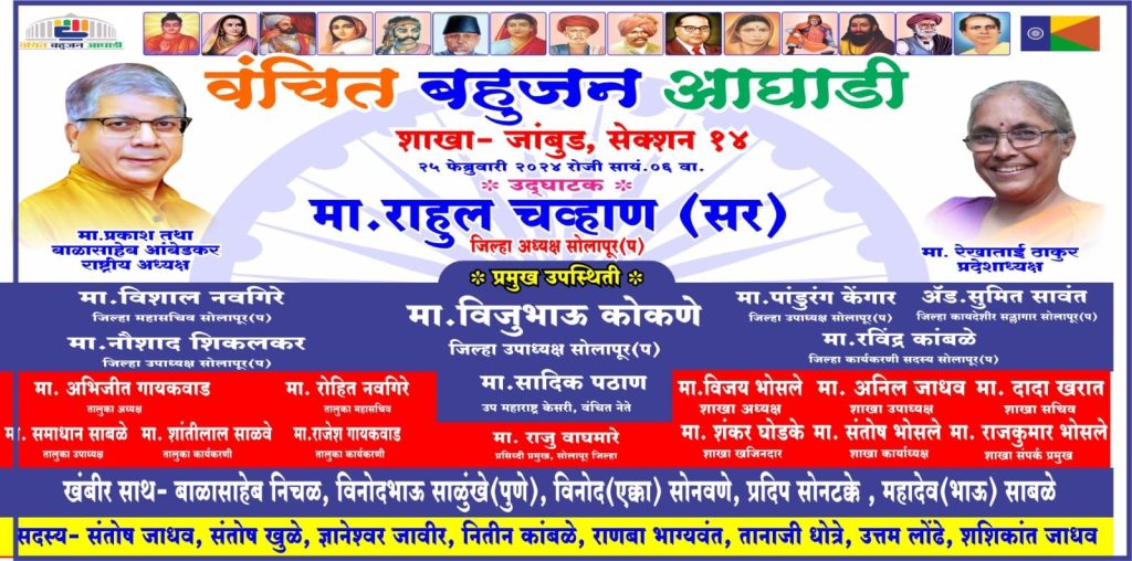माळशिरस :वंचित बहुजन आघाडीचे राष्ट्रीय अध्यक्ष प्रकाश तथा बाळासाहेब आंबेडकर प्रदेशाध्यक्ष रेखाताई ठाकूर यांच्या आदेशाने गाव तिथं वंचित ची शाखा.घर तिथं वंचित चा कार्यकर्ता हे ध्येय डोळया समोर ठेऊन मौजे जांबुड सेक्शन १४ तालुका माळशिरस येथे सोलापूर जिल्हाध्यक्ष राहुल चव्हाण सर