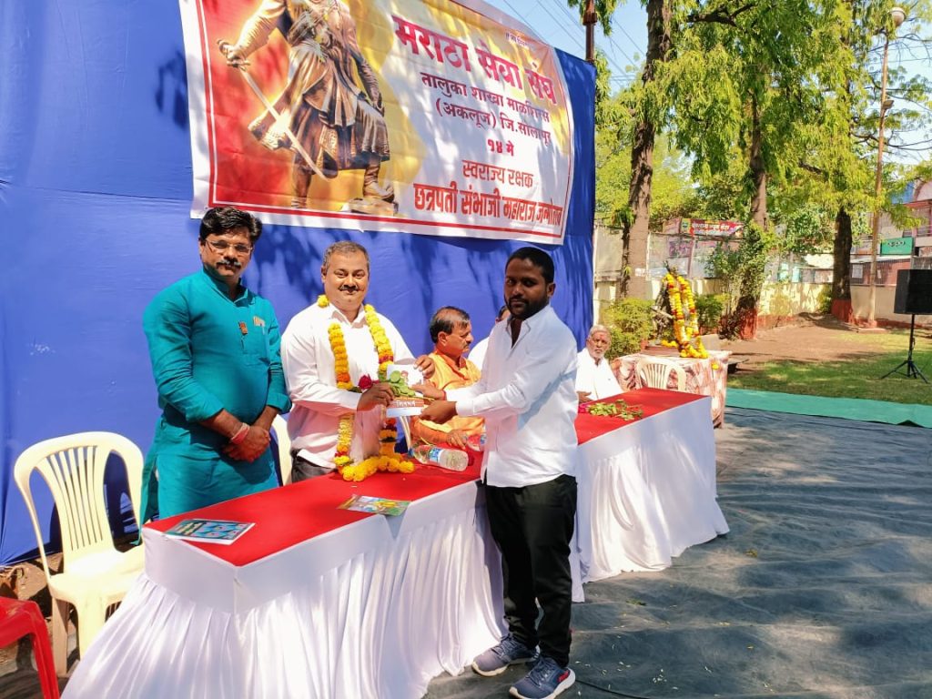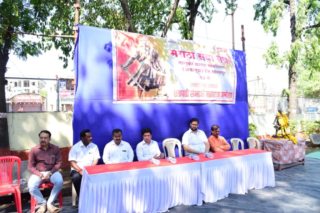 यावेळी मराठा सेवा संघ ,संभाजी ब्रिगेड,जिजाऊ ब्रिगेडचे पदाधिकारी ,सदस्य तसेच बहुसंख्य नागरिक उपस्थित होते.कार्यक्रमाचे सूत्रचंलन व आभार मराठा सेवा संघ माळशिरस तालुका सचिव राजेंद्र मिसाळ यांनी मानले.
