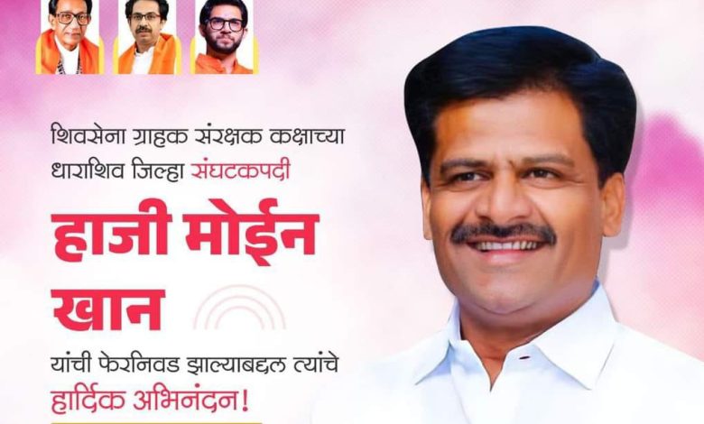 राज्यातील शिवसेना ग्राहक संरक्षण कक्षाचे जिल्हा निहाय संघटक व समन्वयक यांच्या निवडी जाहीर —धाराशिव जिल्हा कक्ष संघटक पदी मोईनखान यांची फेरनिवड