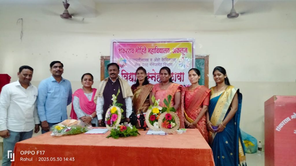 अकलूज येथील शंकराव मोहिते महाविद्यालयात मंगळवार दि.३०/०५/२०२३ रोजी वनस्पतीशास्त्र विभाग व ॲग्रो केमिकल्स अँड पेस्ट मॅनेजमेंट विभागप्रमुख प्रा. रामलिंग सावळजकर आणि डॉ. सुभाष शिंदे यांचा सेवापूर्ती समारंभ आजी-माजी विद्यार्थी व विभागातील सहकाऱ्यांच्या वतीने आयोजित करण्यात आला.