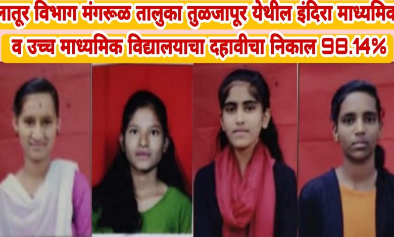 लातूर विभाग मंगरूळ तालुका तुळजापूर येथील इंदिरा माध्यमिक व उच्च माध्यमिक विद्यालयाचा दहावीचा निकाल 98.14%