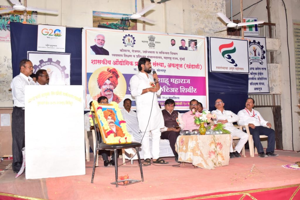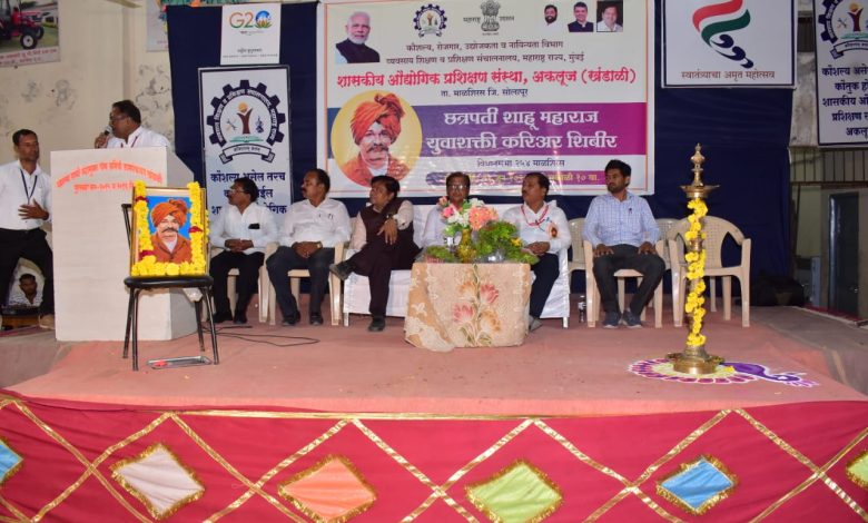 खंडाळी येथे गुरुवार,दि.1 जून 2023 रोजी छत्रपती शाहू महाराज युवाशक्ती करिअर शिबिर कार्यक्रम संपन्न झाला.कुशल महाराष्ट्र,रोजगारयुक्त महाराष्ट्र घडविण्याच्या उद्देशाने कौशल्य,रोजगार,उद्योजकता व नाविन्यता विभागांतर्गत व्यवसाय शिक्षण व प्रशिक्षण संचालनालयामार्फत खंडाळी (अकलूज) येथील औद्योगिक प्रशिक्षण संस्थेत छत्रपती शाहू महाराज युवाशक्ती करिअर शिबिर पार पडले असल्याची माहिती संस्थेचे प्राचार्य राजेंद्र आवडे यांनी दिली.यावेळी गटनिदेशक प्रकाश मोरे व निर्देशक वर्ग, कार्यालयीन कर्मचारी वर्ग उपस्थित होते. कार्यक्रमाचे सूत्र संचालन श्री. ठाकूर सर यांनी केले.
