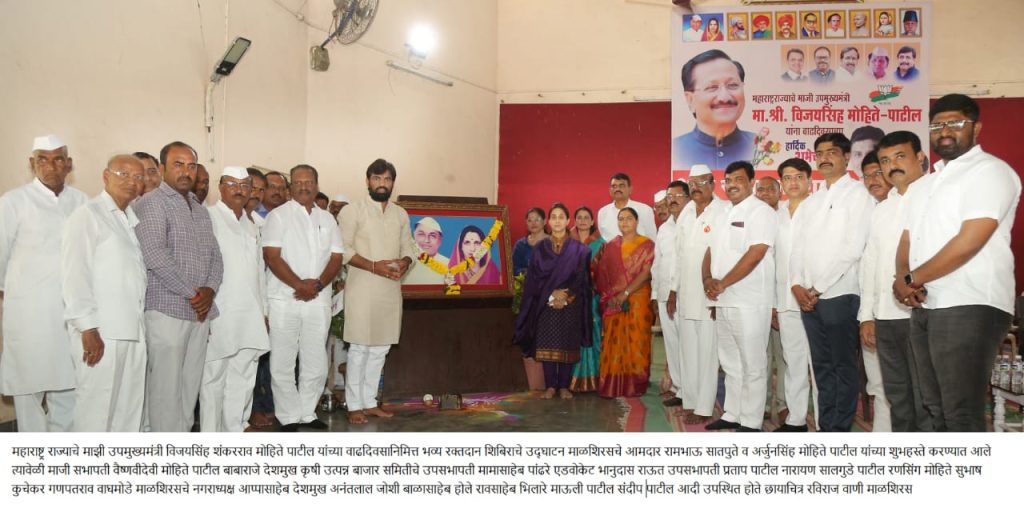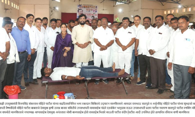 महाराष्ट्राचे माजी उपमुख्यमंत्री विजयसिंह मोहिते पाटील यांच्या वाढदिवसानिमित्त रक्तदान शिबिर संपन्न