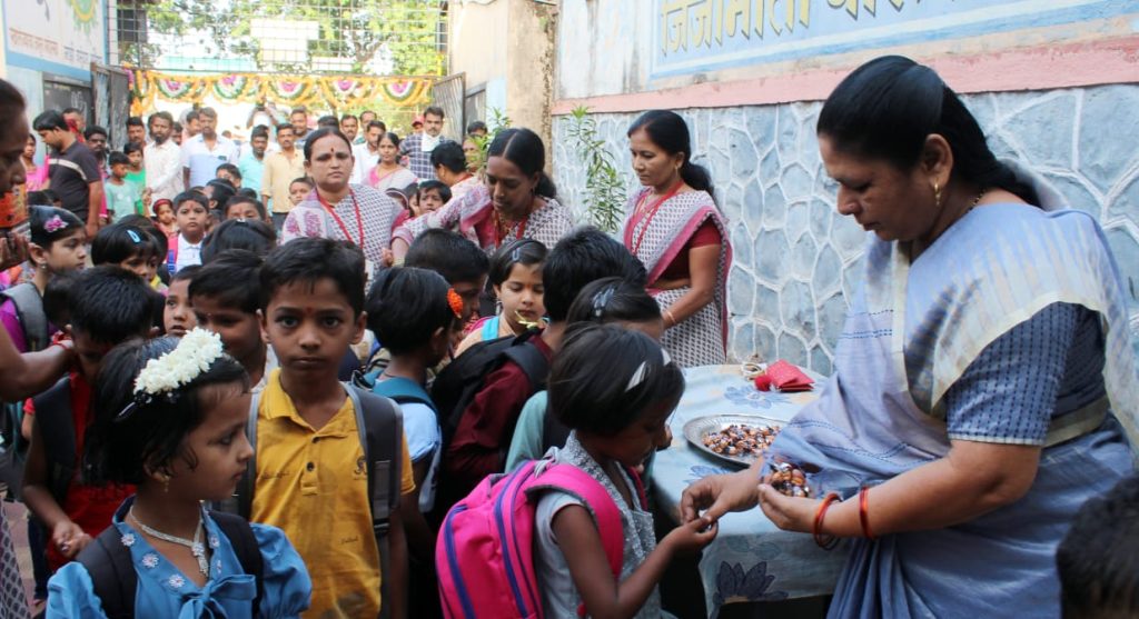 शिवाय शाळेच्या पहिल्याच दिवशी विद्यार्थ्यांची उपस्थिती लक्षणीय होते याप्रसंगी सर्व शिक्षक शिक्षिका पालक वर्ग व विद्यार्थी मोठ्या संख्येने उपस्थित होते