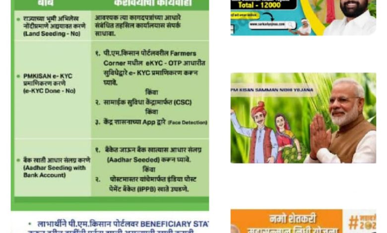 पी एम किसान सन्माननिधी व नमो शेतकरी महा सन्माननिधीचा लाभ घेण्याचे आवाहन.